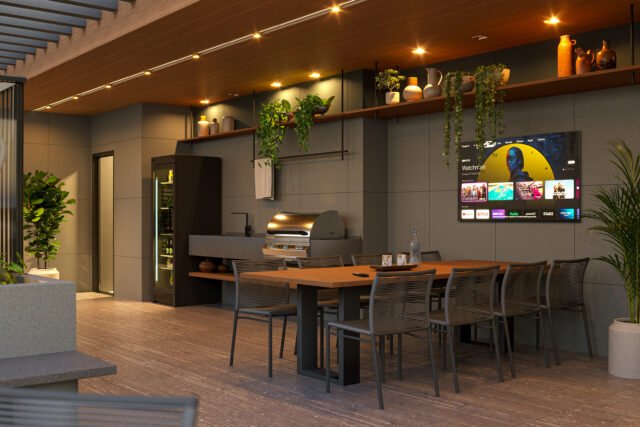 ∙ Terraço gourmet com churrasqueira e TV